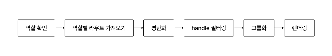 };상세 페이지나 생성 페이지처럼 메뉴에 노출할 필요 없는 라우트는 handle을 생략했기 때문에, 이 필터 하나로 메뉴용 라우트만 추려낼 수 있다.